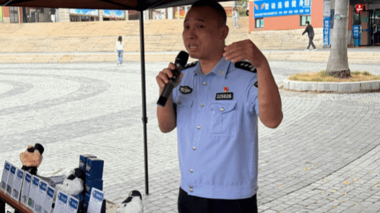 图3 漳州开发区公安分局刑侦大队教导员许秋生警官介绍防毒知识