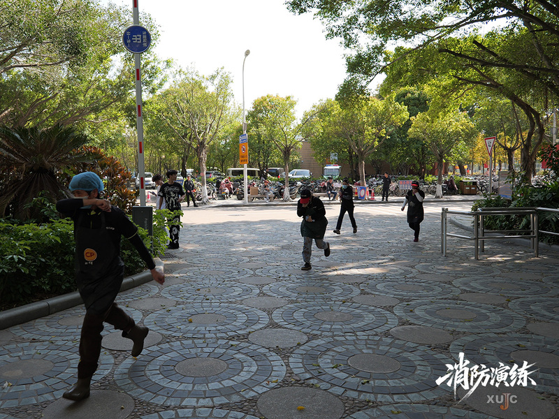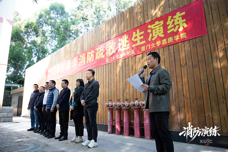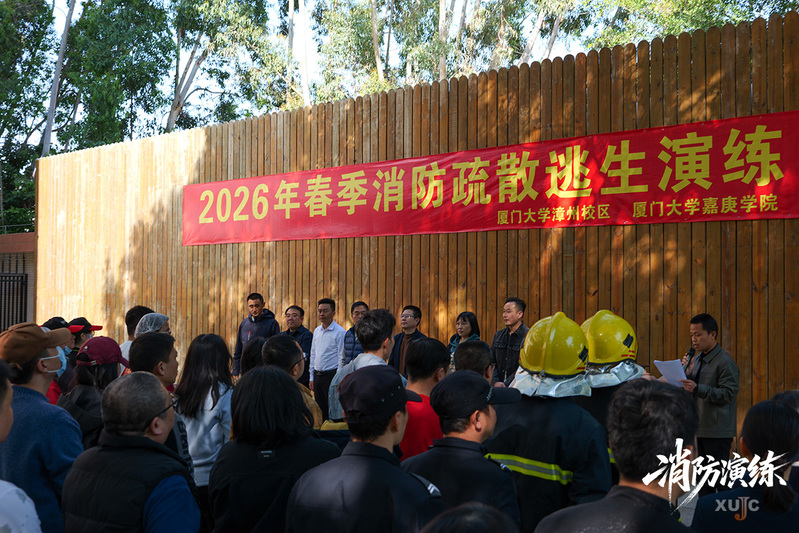 3月16日,2026年春季消防疏散逃生演练在学术交流中心和嘉元餐厅举行。此次演练由厦门大学漳州校区保卫办、嘉庚学院保卫部联合举办。