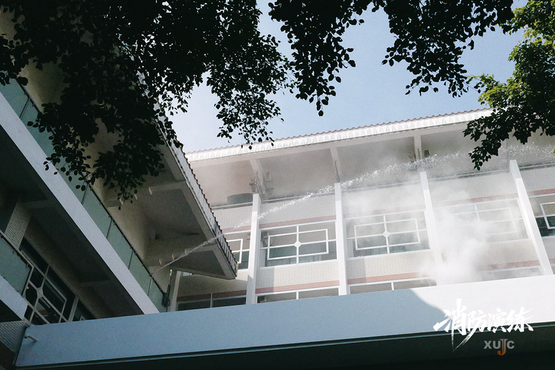 下午3时,杨云良宣布演练正式开始。本次演练模拟学术交流中心客房、嘉元餐厅后厨突发火情,烟雾迅速蔓延的场景。员工发现火情后第一时间按下消防手报,并组织人员疏散。消控室接到火情反馈后立即联动应急广播,同步推送疏散指令。学术交流中心、餐厅经理迅速赶赴现场统筹灭火与疏散工作。师生听到广播后,听从指挥有序撤离。火势扩大后,校区微型消防站快速响应、到场支援,与现场力量协同完成初期火灾处置。